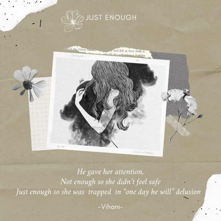 He gave her attention. Not enough so she didn’t feel safe. Just enough so she was trapped in “one day he will” delusion.