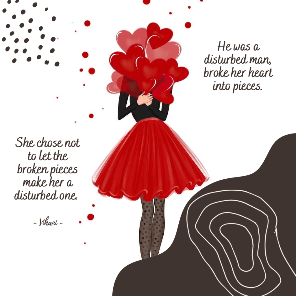He was a disturbed man, broke her heart into pieces. She chose not to let the broken pieces make her a disturbed one. ♥️
